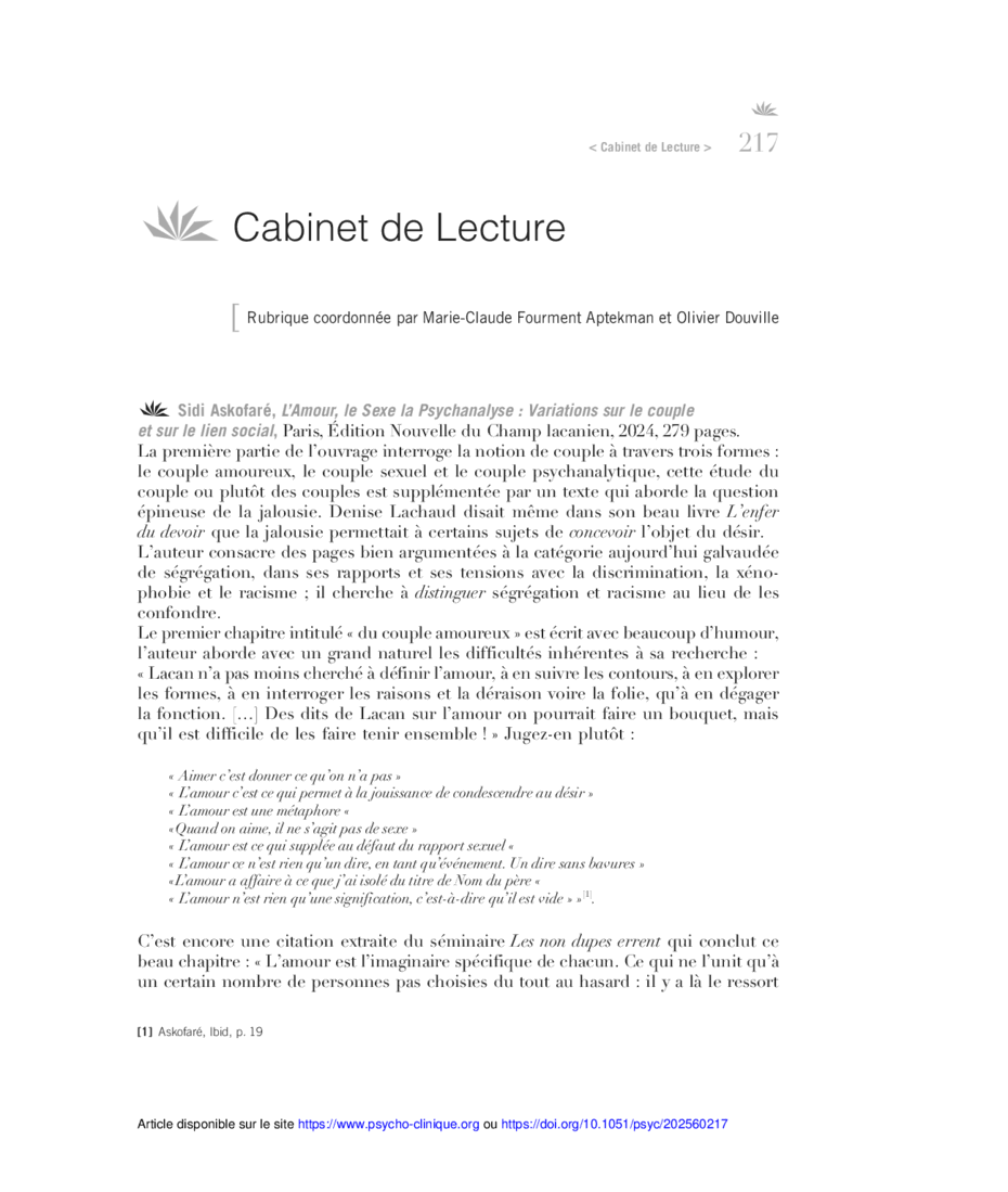 psychologie clinique n°60, 2025/2, pp. 217–257